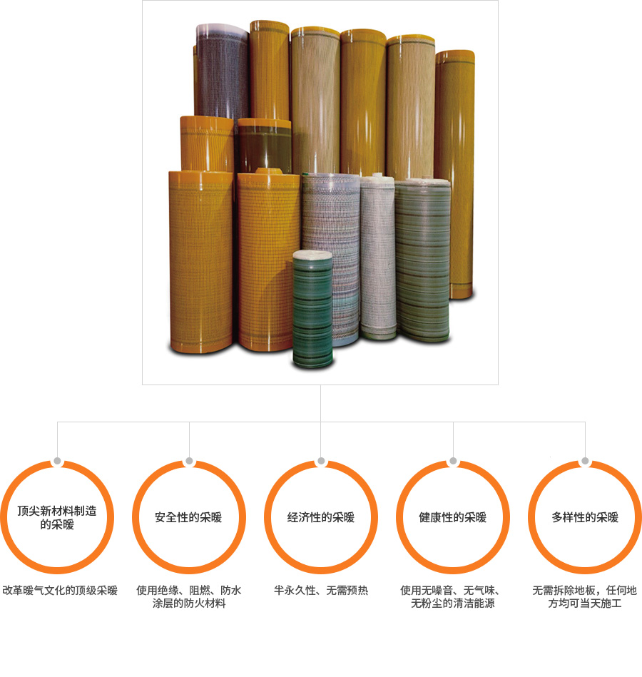 | 安全性 | 使用劣质发热线时因潮湿造 成触电/漏电现象 | 电极线引起的火灾危险性 | 无法保障长期使用时电极性发生偏 离后寿命的缩短及引火可能性。 | 织造的纤维材料毁损时,只需剪断 毁损部位并保障半永久性及安全性 |